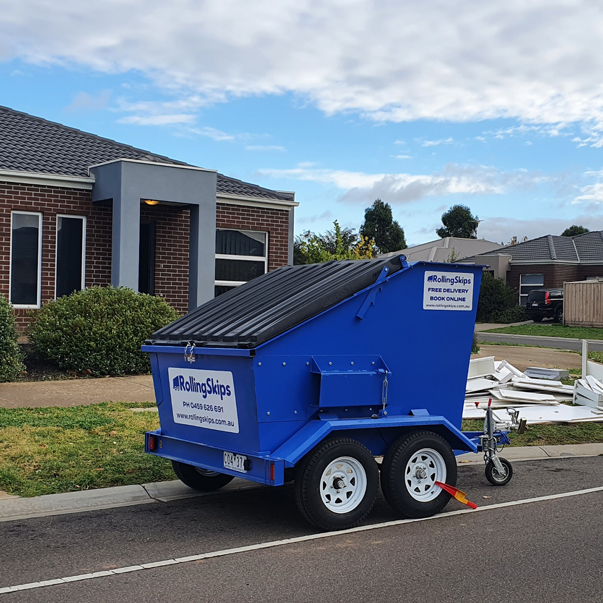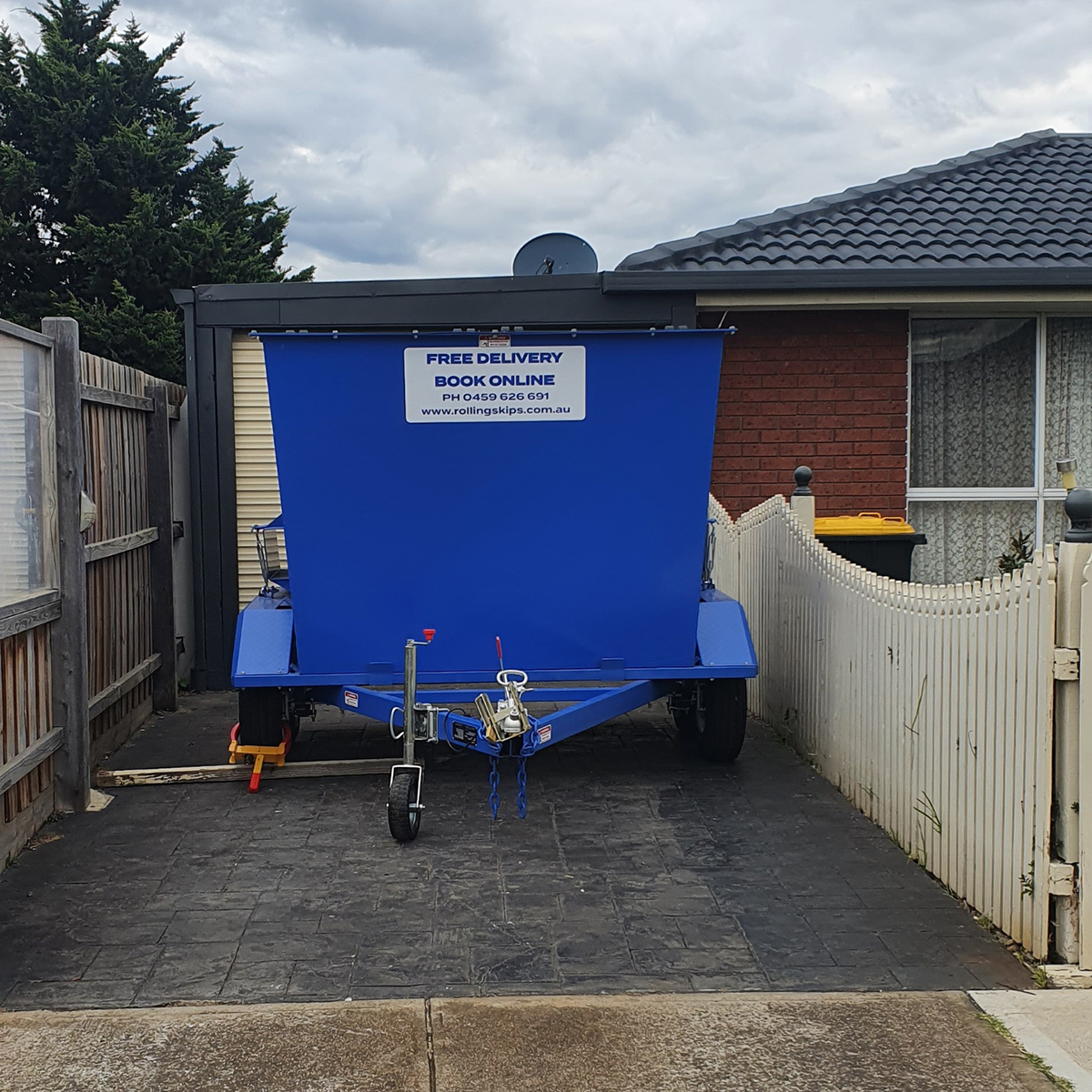 - Skip Bins on Wheels: Our mobile skip bins eliminate the need for council permits in most areas, as their registered trailer design allows placement within your property lines.